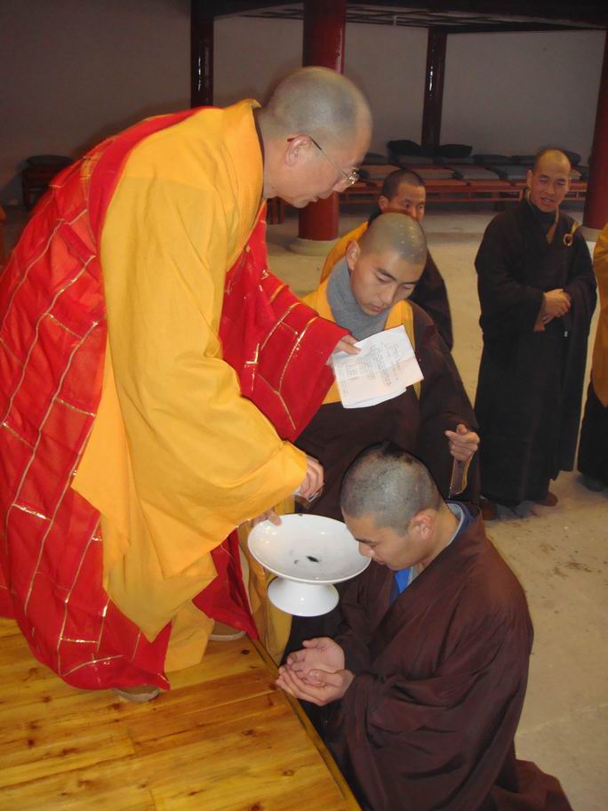 2009年12月17日上午十点(农历十一月初二),雁荡山能仁寺僧众齐聚法堂,举行发心出家的净人剃度仪式。由本寺方丈了法大和尚代刀剃度天童寺方丈诚信大和尚的徒弟。